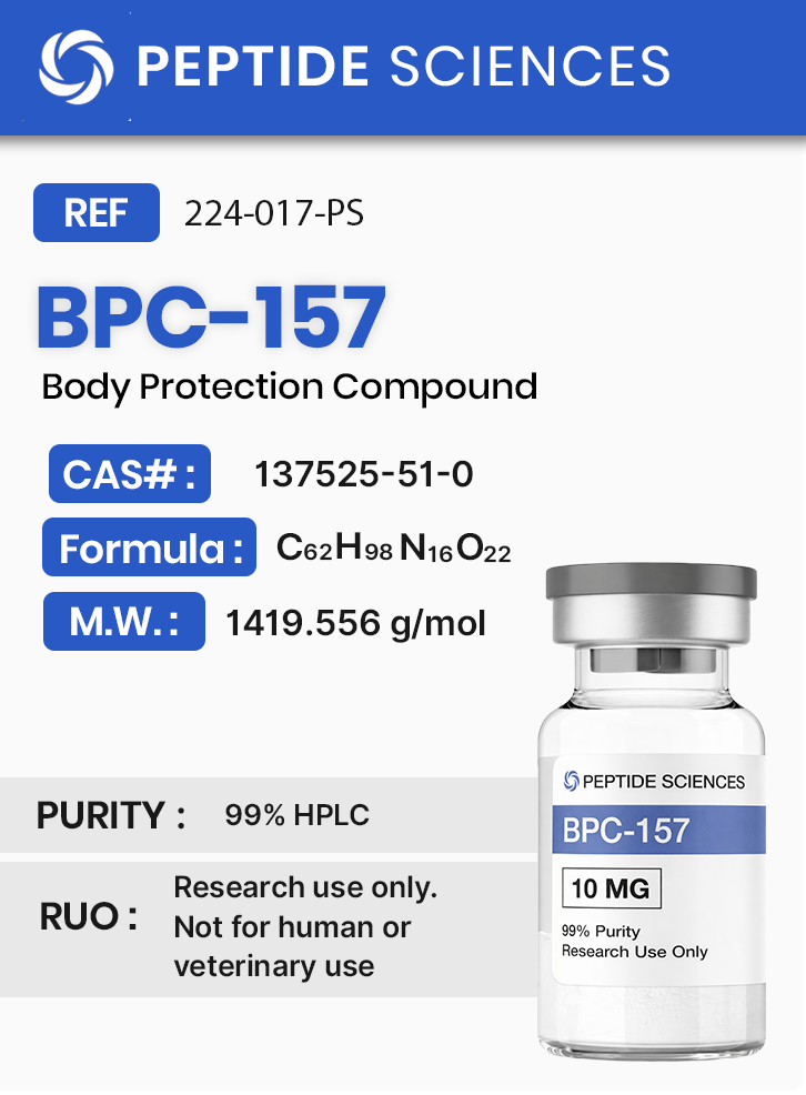 BPC-157 (Body Protection Compound-157) is a synthetic peptide composed of 15 amino acids and is studied in research as a fragment associated with larger gastric-derived cytoprotective protein/peptide systems. Within experimental literature, BPC-157 is generally evaluated for mechanistic effects on cellular processes that support barrier integrity, tissue response to injury, and vascular adaptation in controlled models.